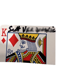 Put your contact info on the playing card(s) — We cut it in half. You keep half, we keep half